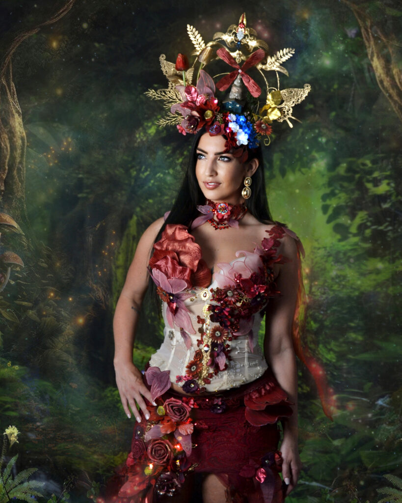 For the great finale in Napels 2025, Tiziana asked me to design a dress. She already fell in love with a design of mine that was a floral fairy dress. I took that inspiration and created an new dress for her.