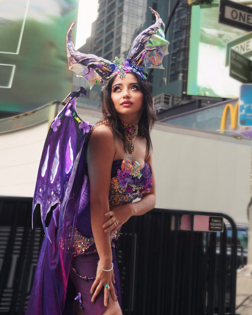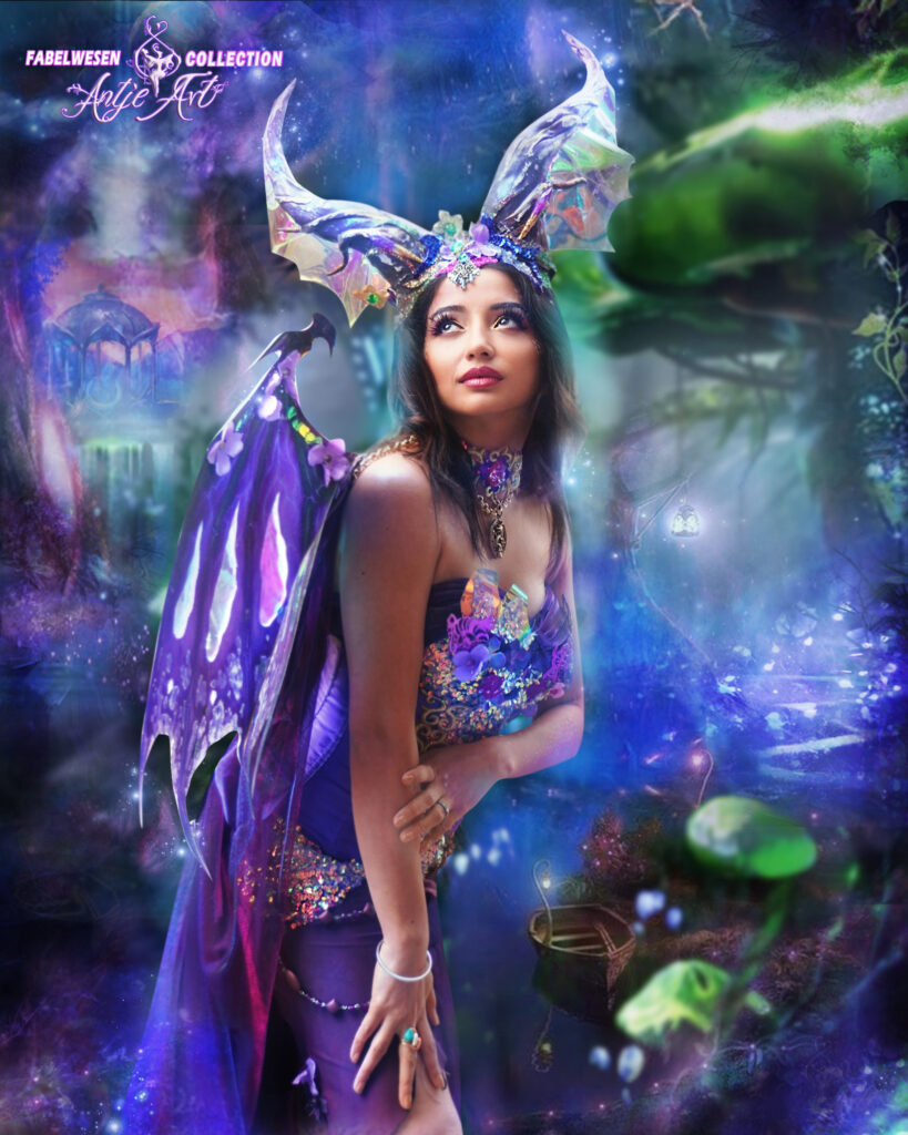 Also when I travel and have my Fashion shows worldwide you can book a Photoshoot by me in my designs. Tarandeep chose the dragon costume. We met first for Hair and make up and made the photoshooting at new york timessquare. I also made some fantasy retouches for her. Here is the original picture and the retouched one. The pictures went out great and I decided to take her as campaign model for my collection “Fabelwesen Collection”.