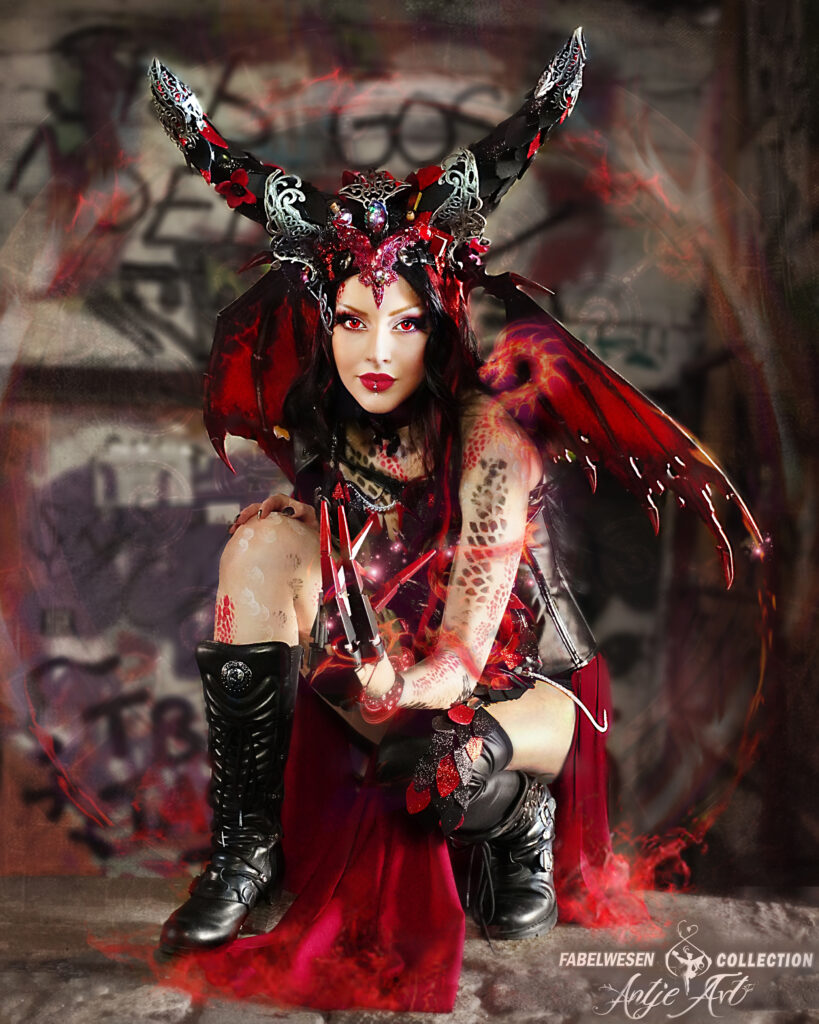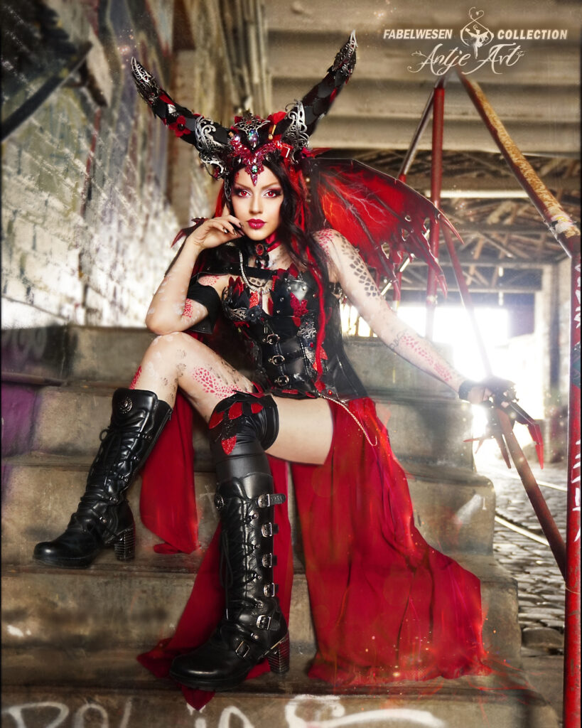 For Demona i designed an black, red costume, created the Hair and Makeup and went to my location which was very urban. The pictures went out great and I also took her as campaign model for my collection “Fabelwesen Collection”.